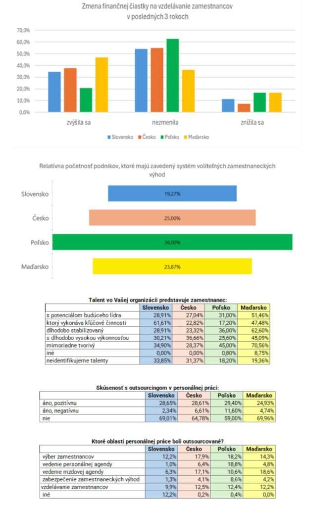 Údaje boli zbierané pomocou vytvoreného dotazníka. Respondentmi boli manažéri ľudských zdrojov, personalisti alebo iní zástupcovia podnikov vo všetkých krajinách. Celkový počet respondentov v krajinách V4 dosiahol počet 2093.